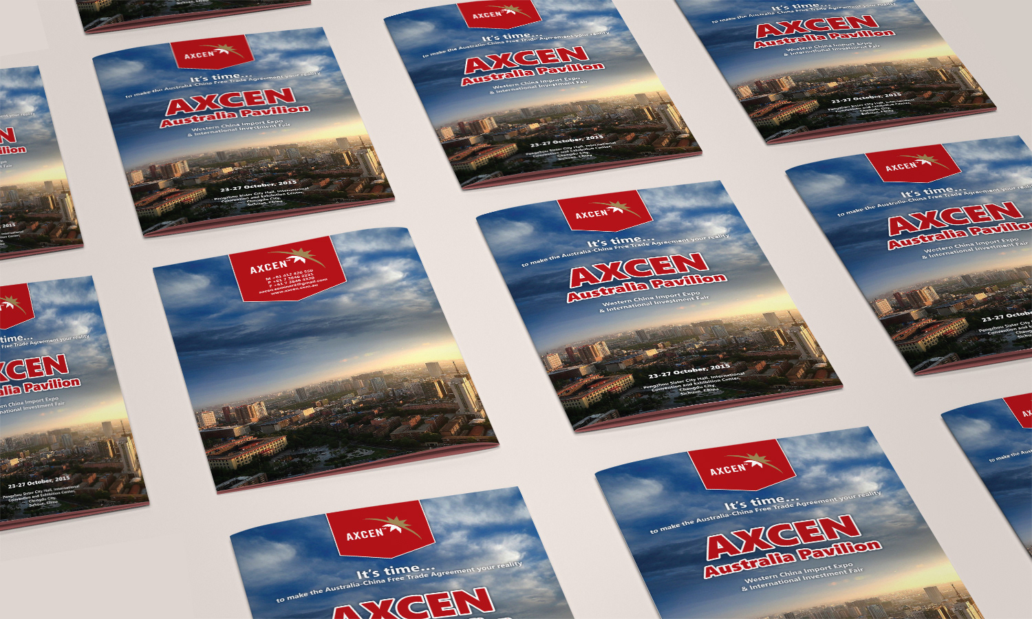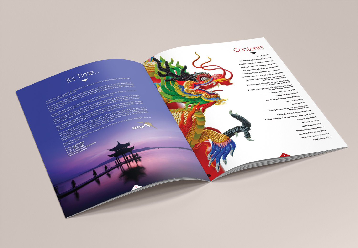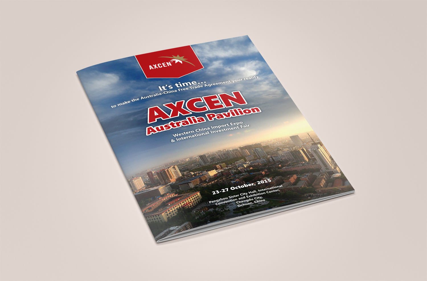 Brochure for AXCEN, which promotes to potential investors the benefits of the China-Australia Free Trade Agreement, pointing out benefits and areas of opportunity.