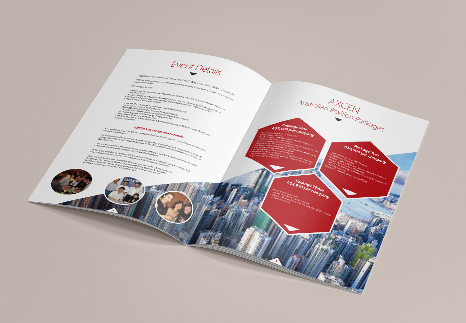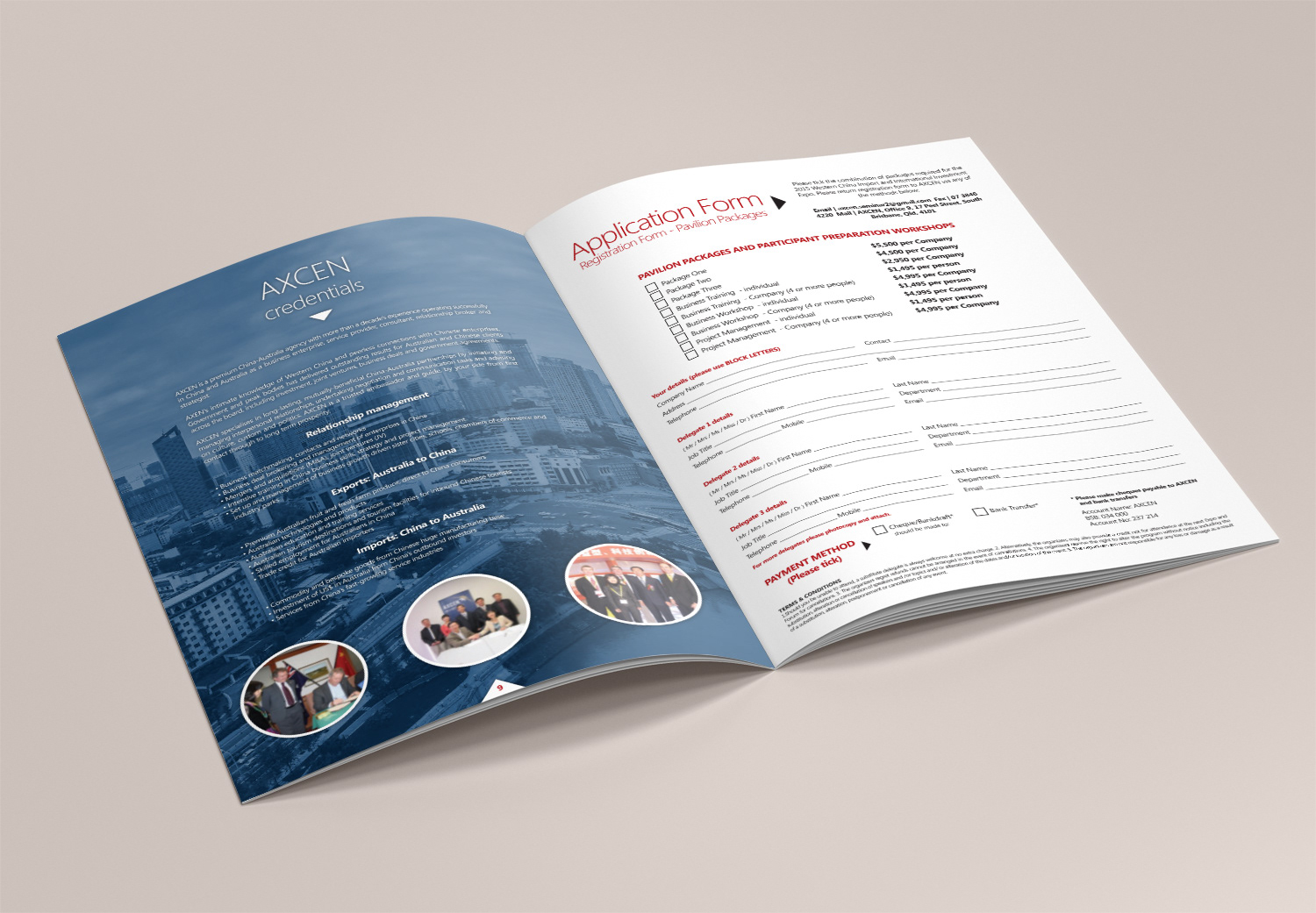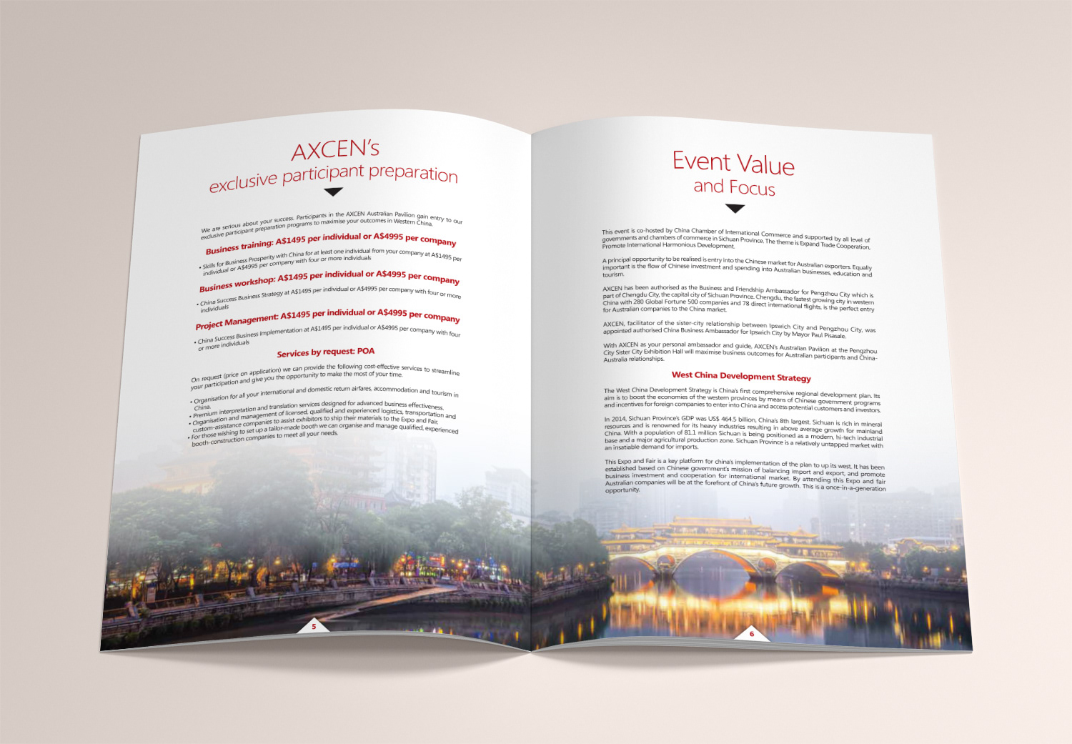 Brochure for AXCEN, which promotes to potential investors the benefits of the China-Australia Free Trade Agreement, pointing out benefits and areas of opportunity.