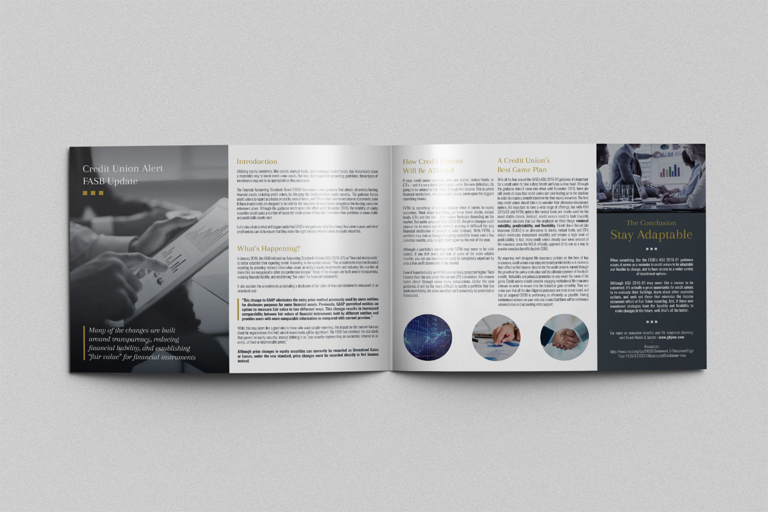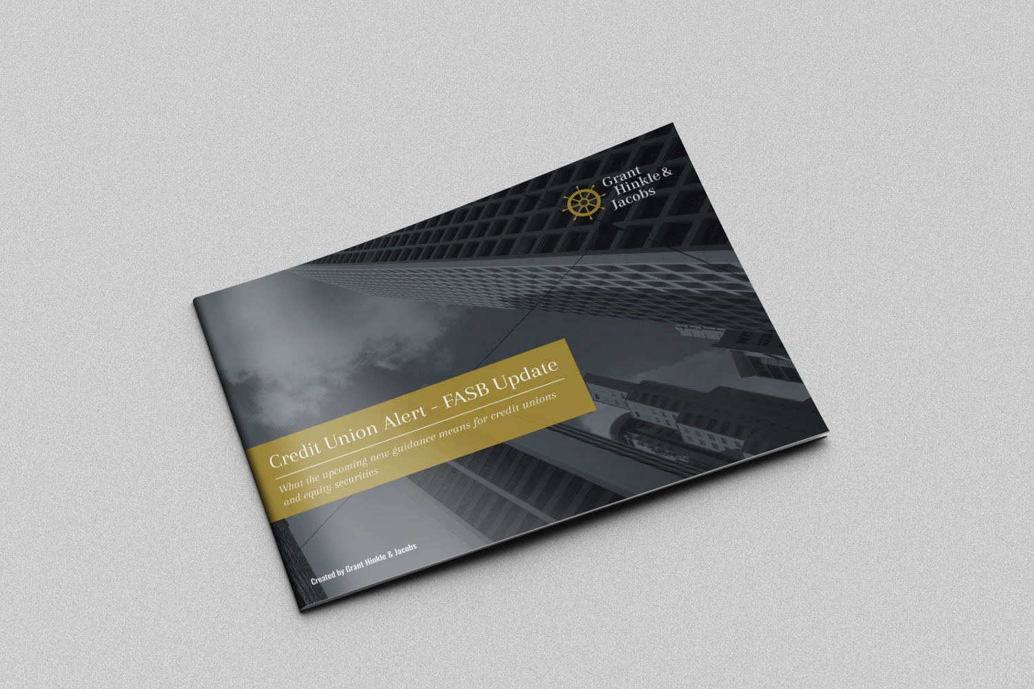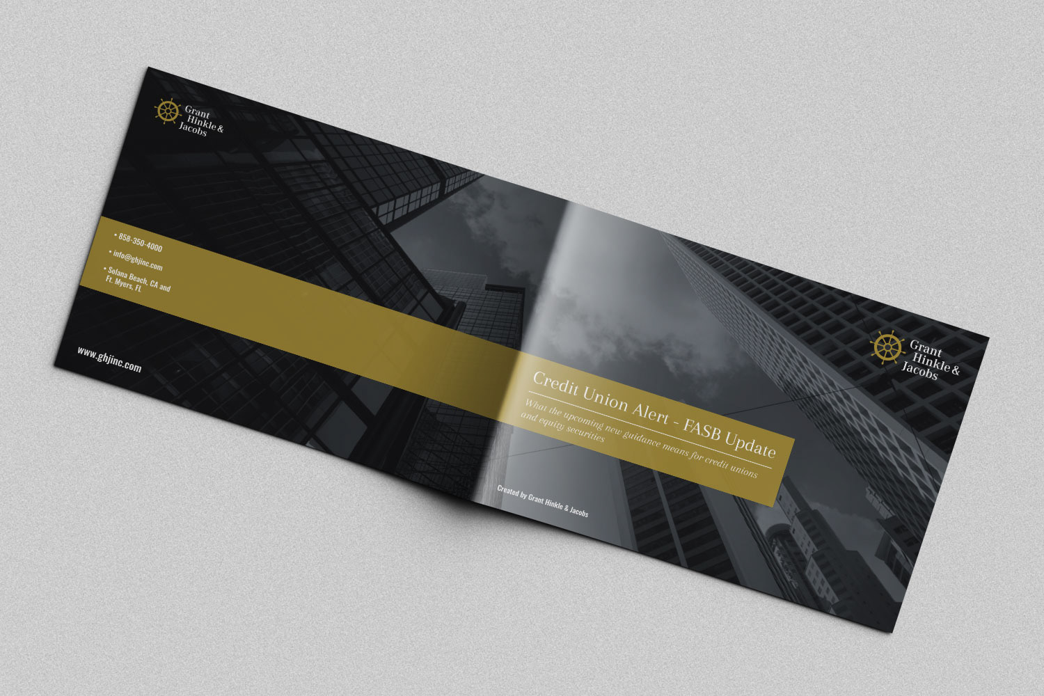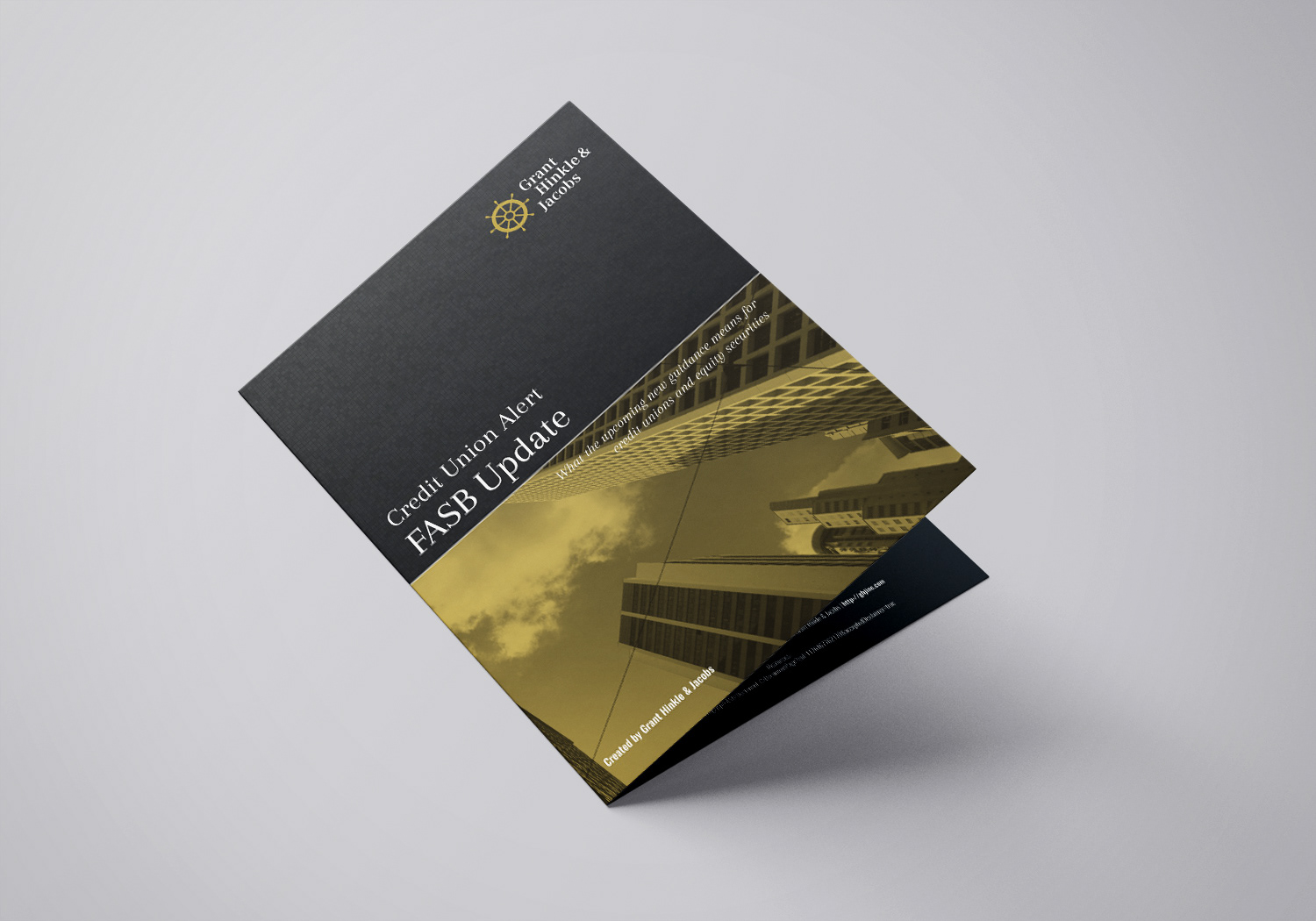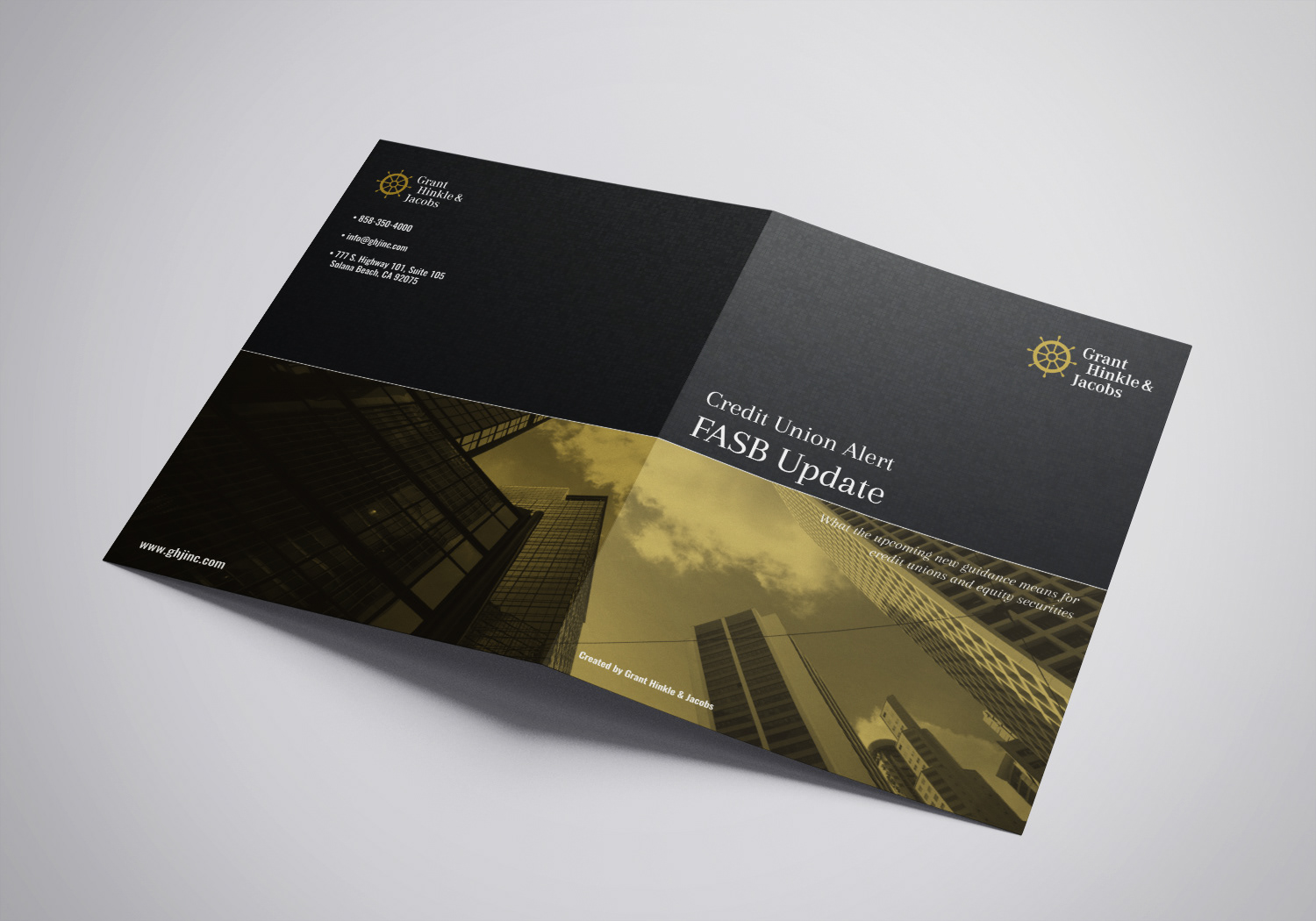 2 versions for a bifold brochure for Grant, Hinkle & Jacobs. Ultimately, the landscape version was the selected one.