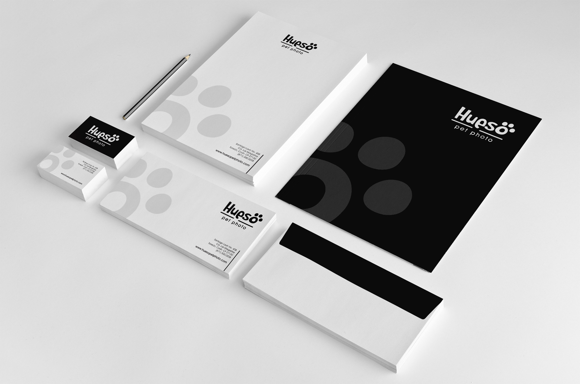 HUESO is a local pet photography studio, offering many packages that include the photo session and personalized items with your pet photo. The concept started with a sort of mascot, but eventually a more simplified and abstract approach was preferred. Simple, playful and very versatile.