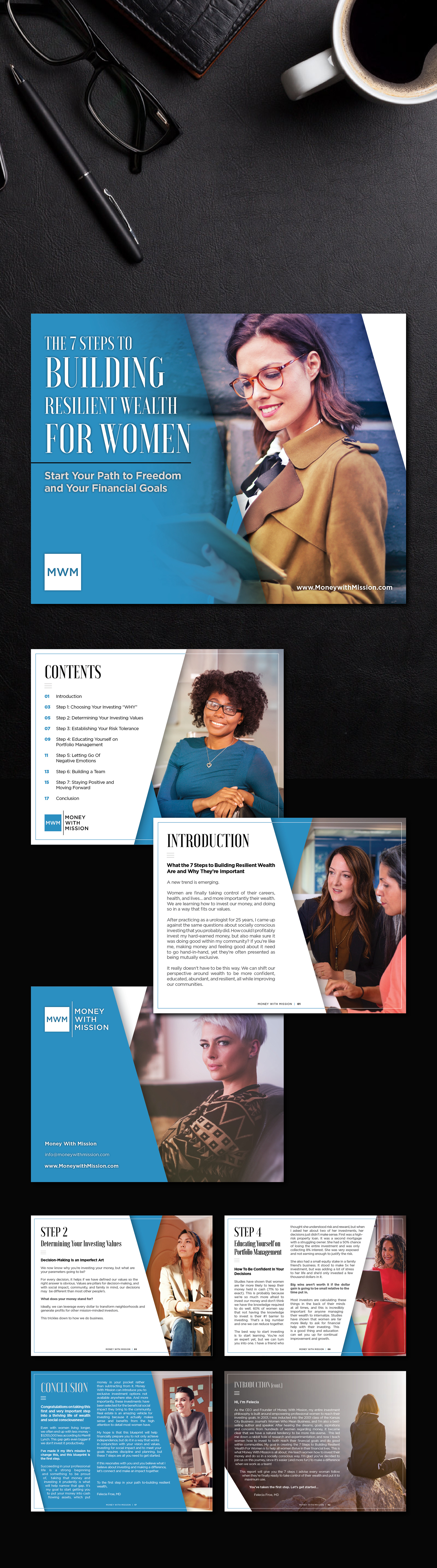 Booklet about creating and managing wealth for women by Money With Mission. It should reflect a contemporary and sophisticated feel. Its elegant while maintaining ease of lecture and simplicity.