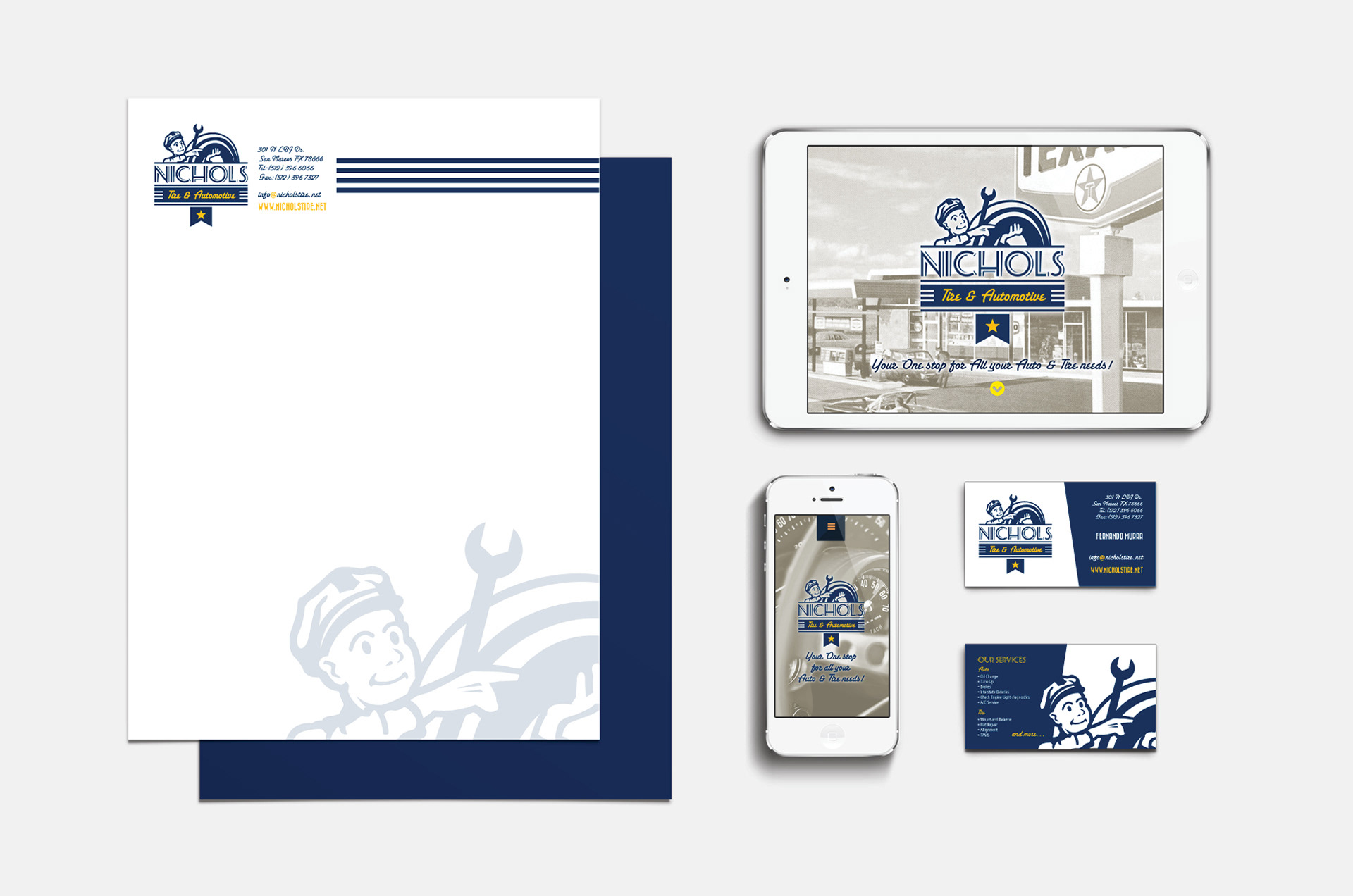 Branding and website for Nichols. The client was very specific he wanted a real vintage look, which reflected service and excelent service. They are located near a University Campus, focusing their marketing efforts on this segment of market, offering special promotions for students.