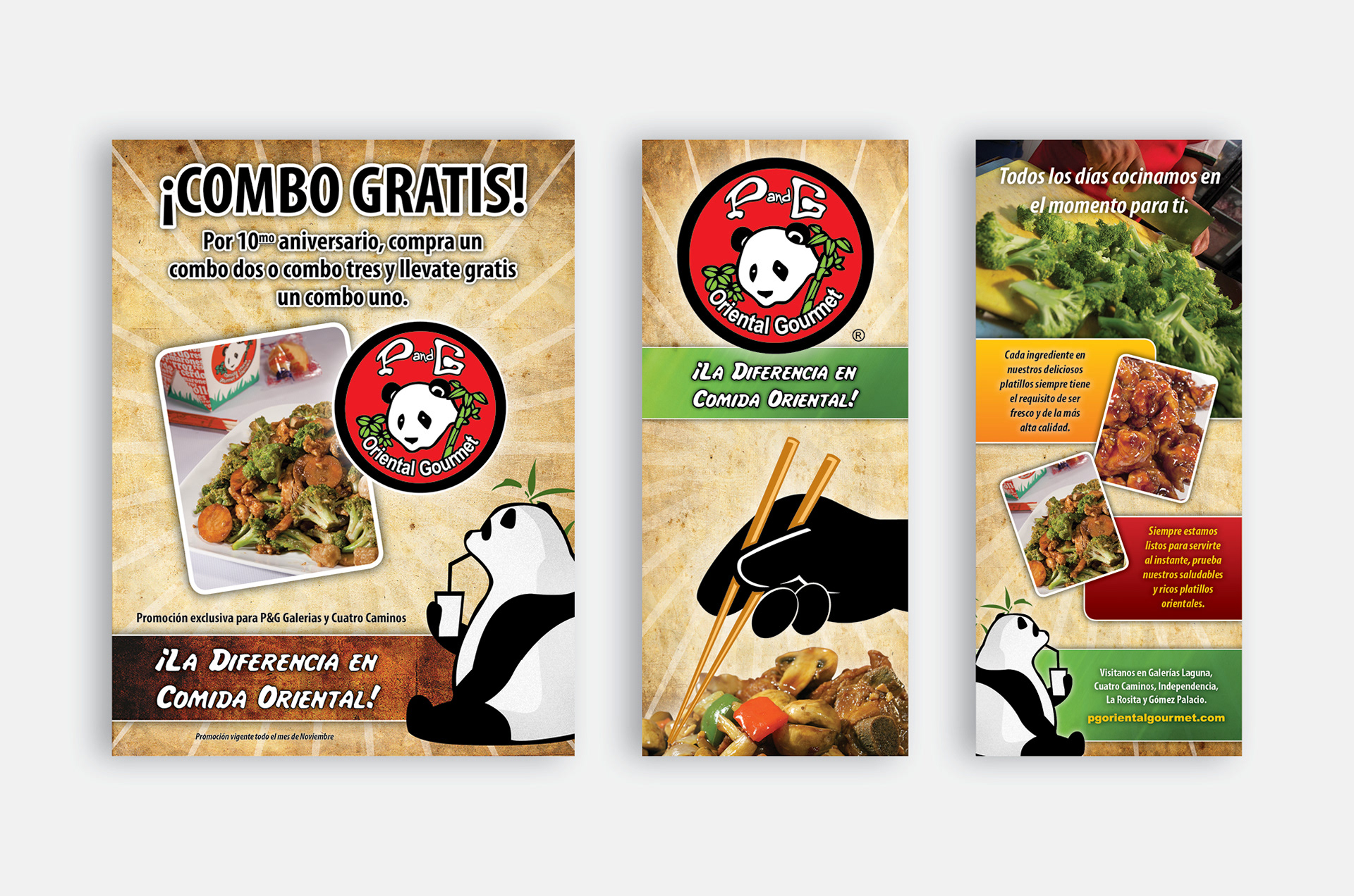 P&G ORIENTAL GOURMET is a well stablished local chinese food chain. Several collaterals were developed for them, like various newspaper ads and magazine ads, brochures and the brand manual. The logo was already developed by them, they just needed the branding to be constructed around it.