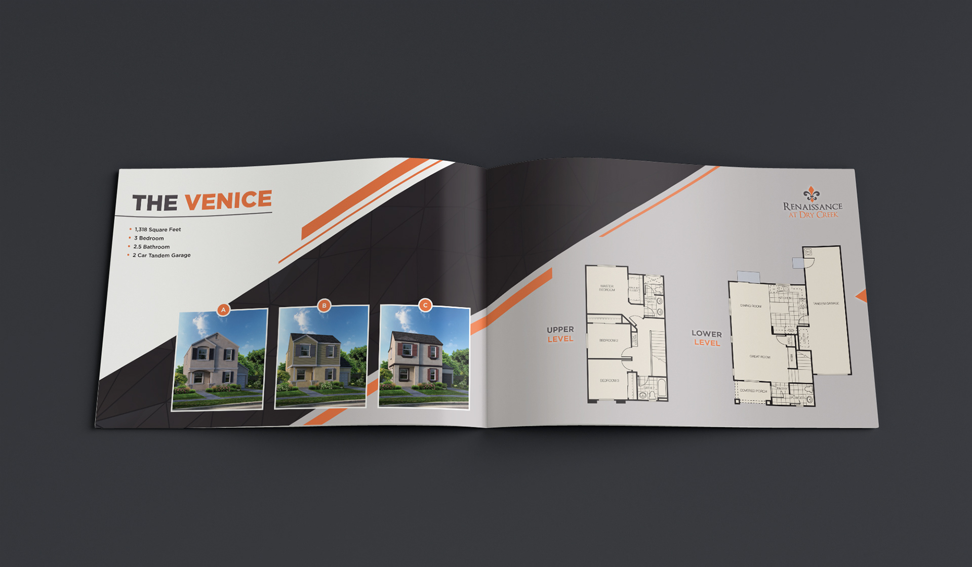 Brochure for an upcoming house development. It is primarily focused on young, middle class couples, so the overall feeling had to be vibrant and modern.