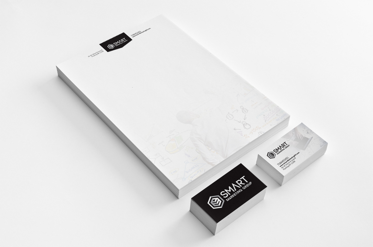 Logo and basic stationary for Smart Marketing agency. Minimalistic and monochromatic, its simple, elegant and modern.