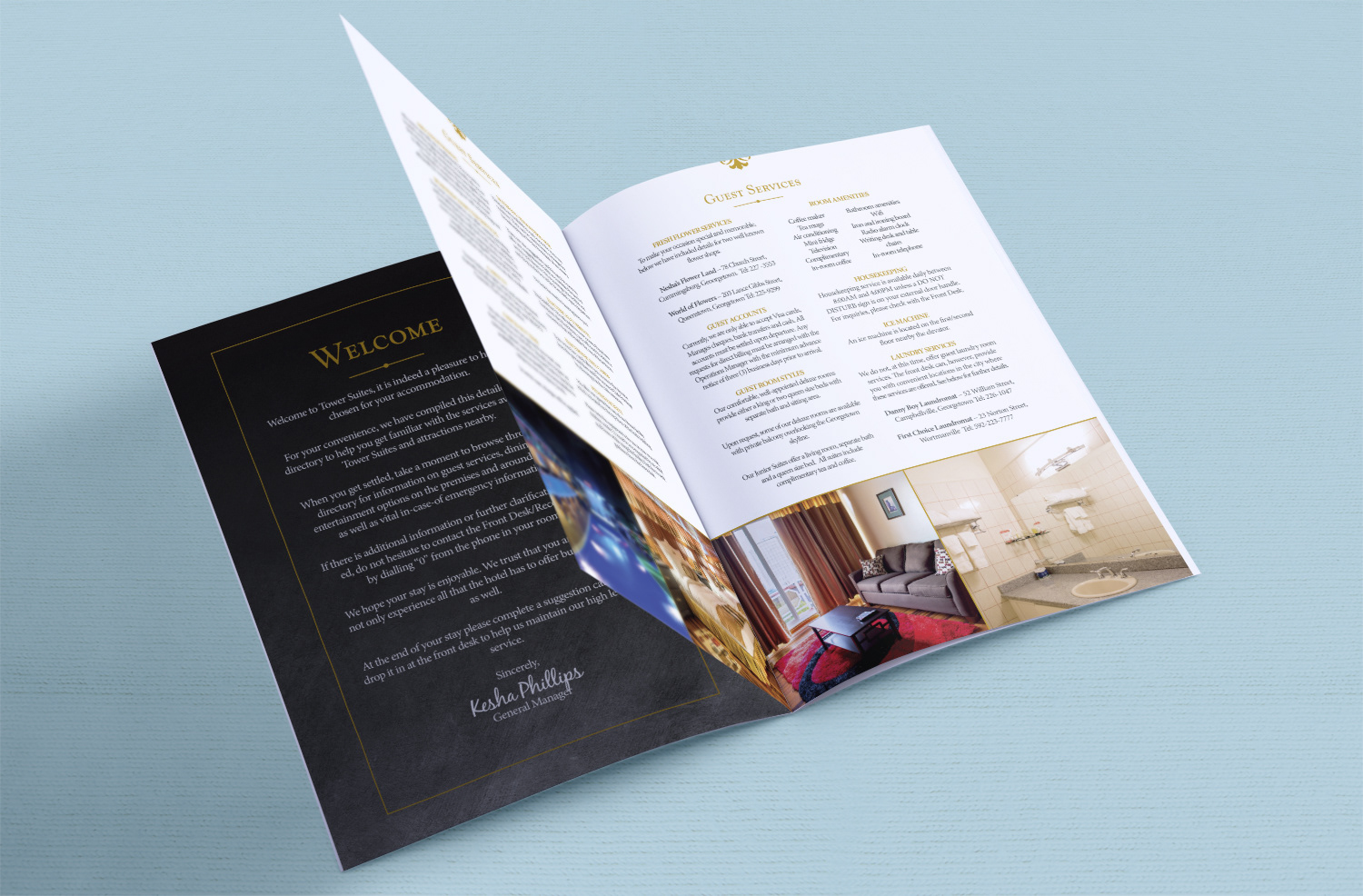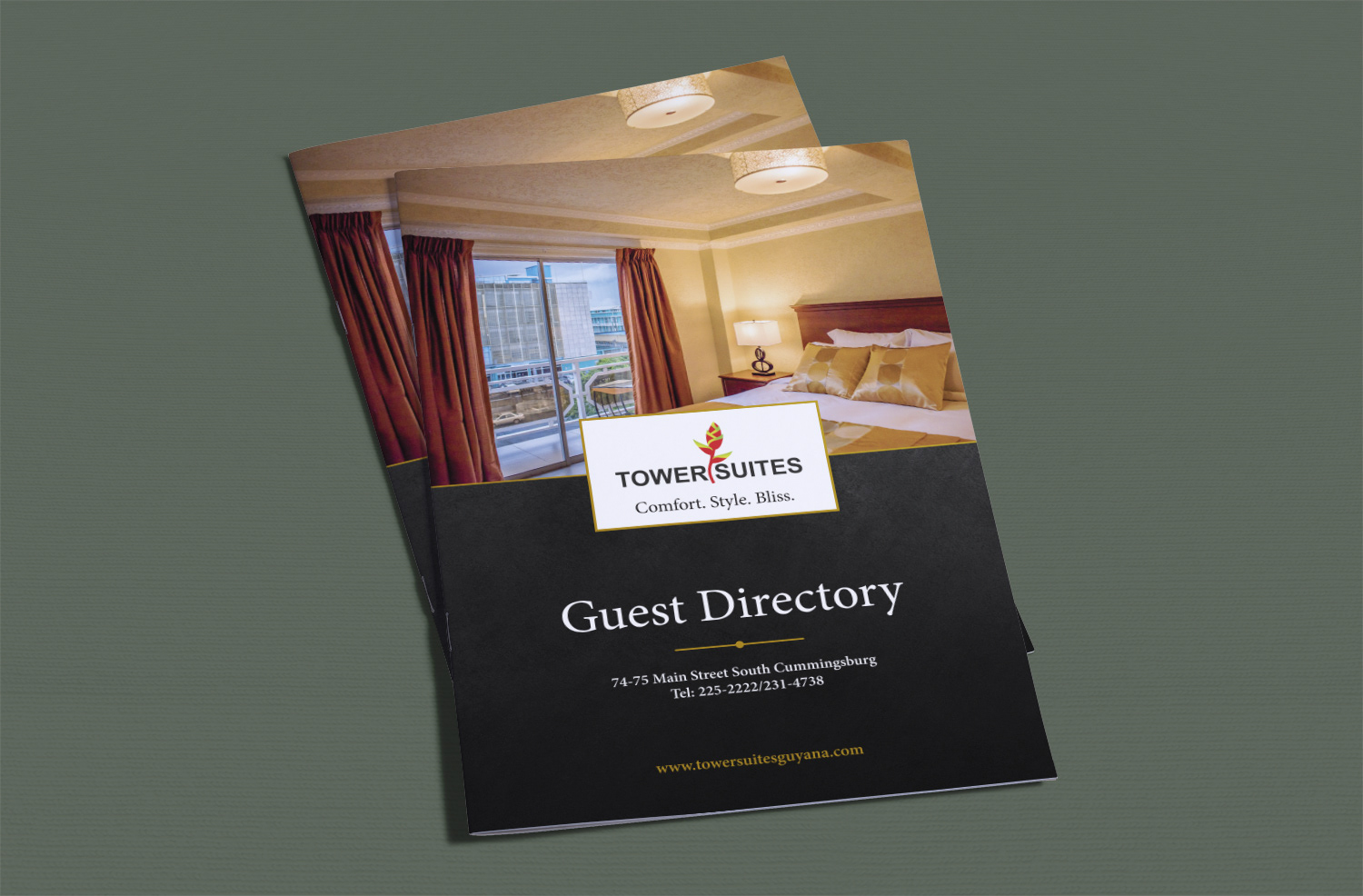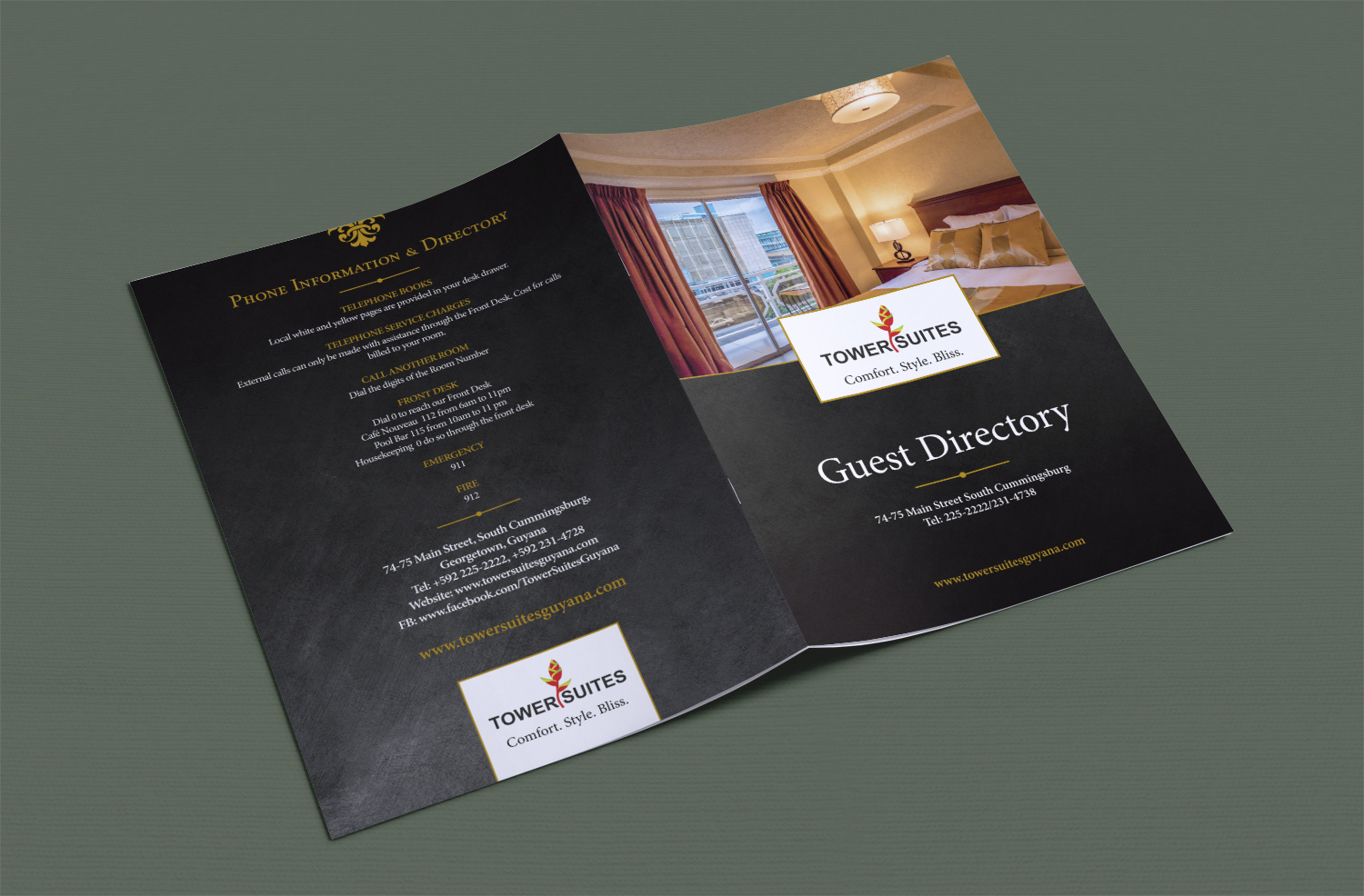 Print material for Tower Suites Hotel, located in Guyana, South America.