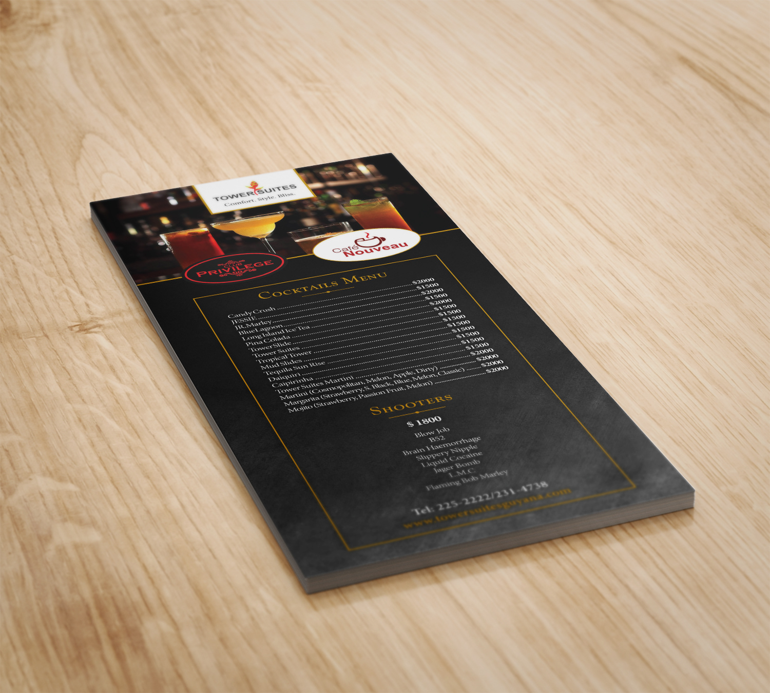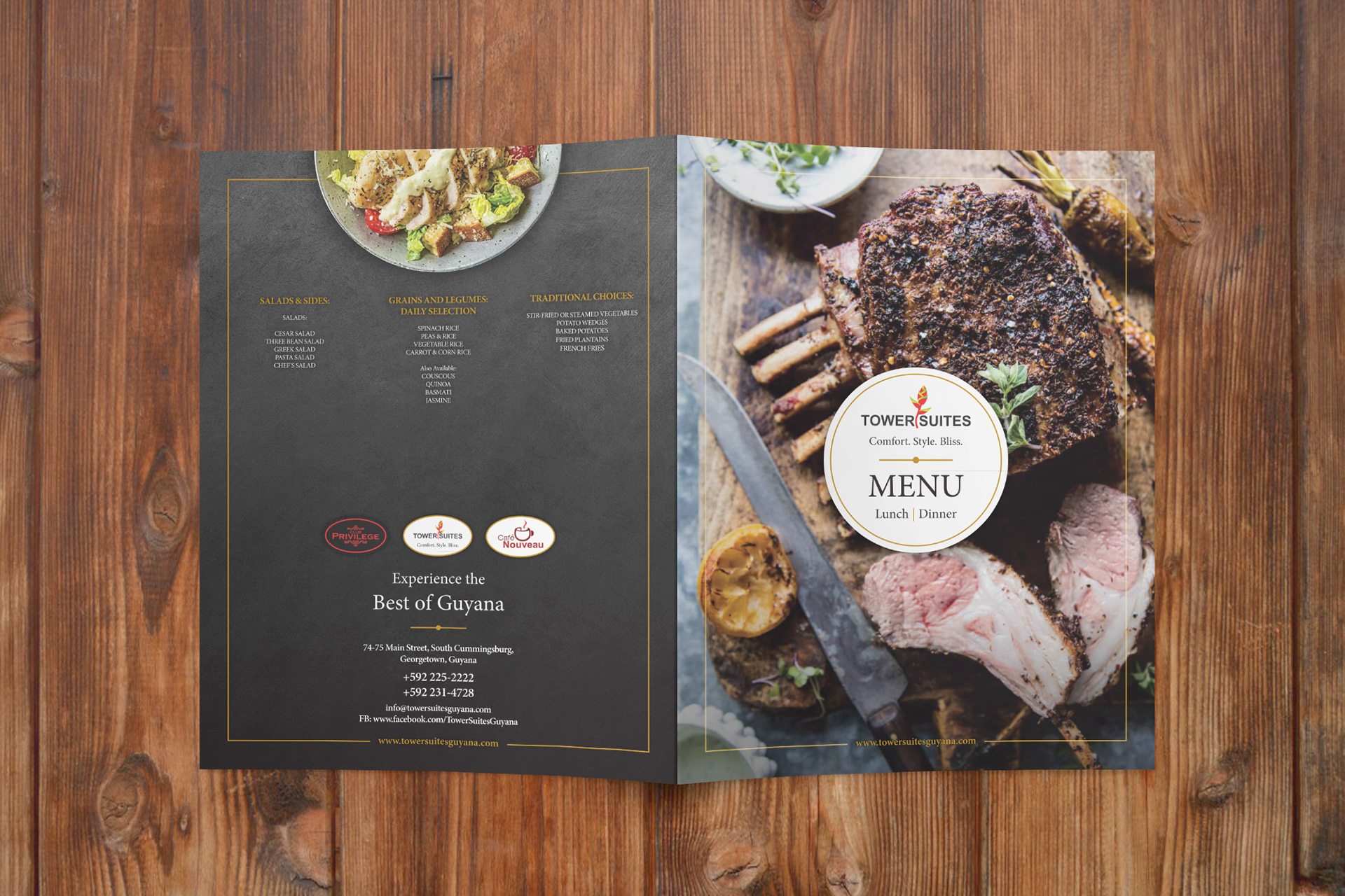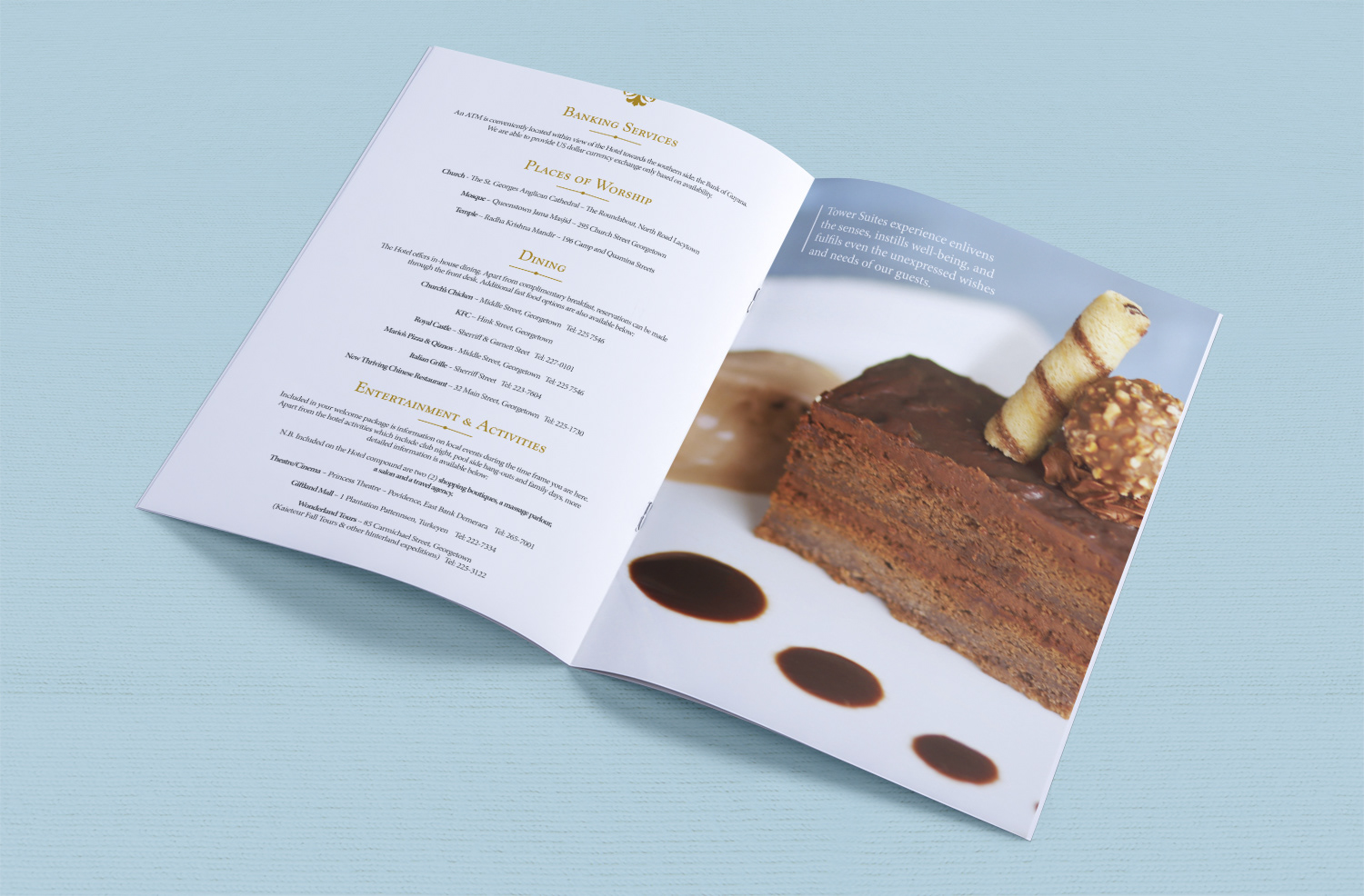 Print material for Tower Suites Hotel, located in Guyana, South America.