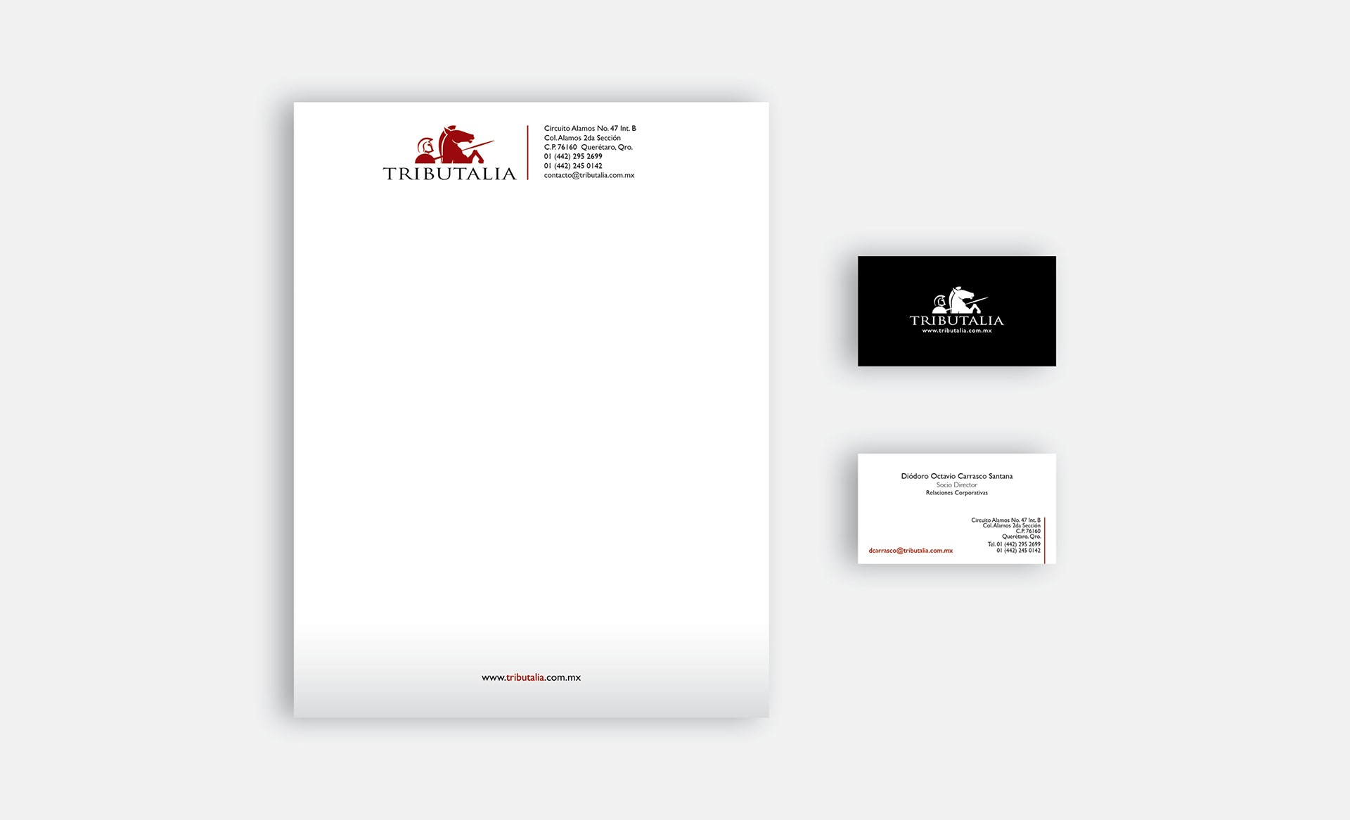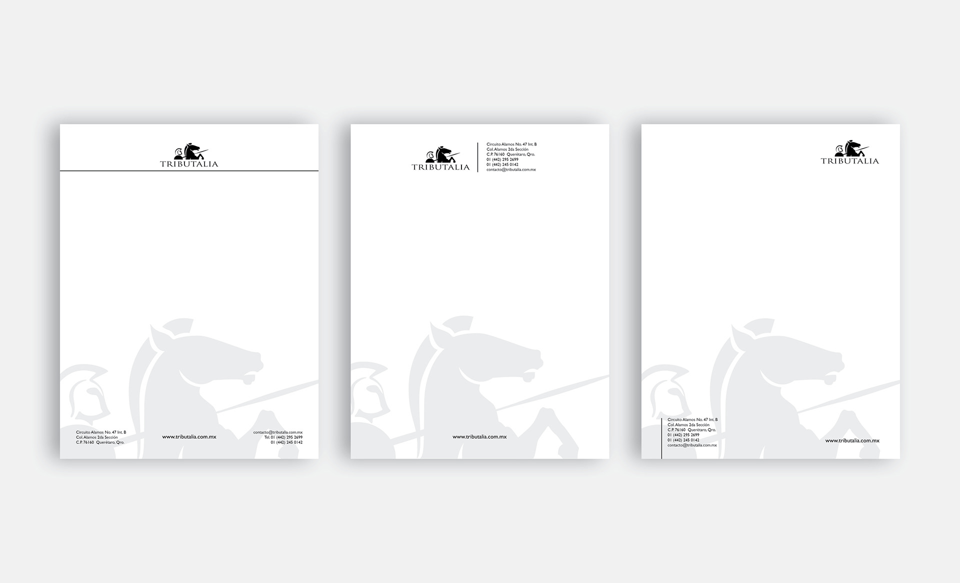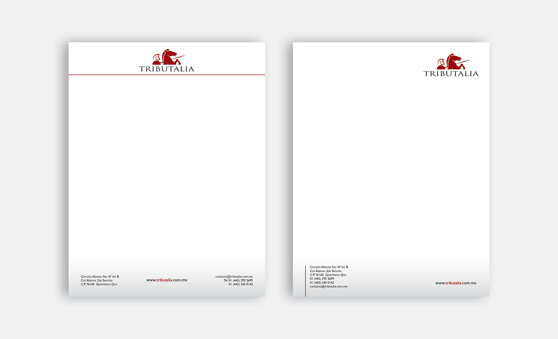 TRIBUTALIA offers a wide range of legal services and counseling. The idea behind the logo was to portray a fighting spirit, protection and determination. Familiar classic images, with modern abstract lines. Clean and simple yet effective at conveying its message. Elegant colors that blend well once applied to stationary.