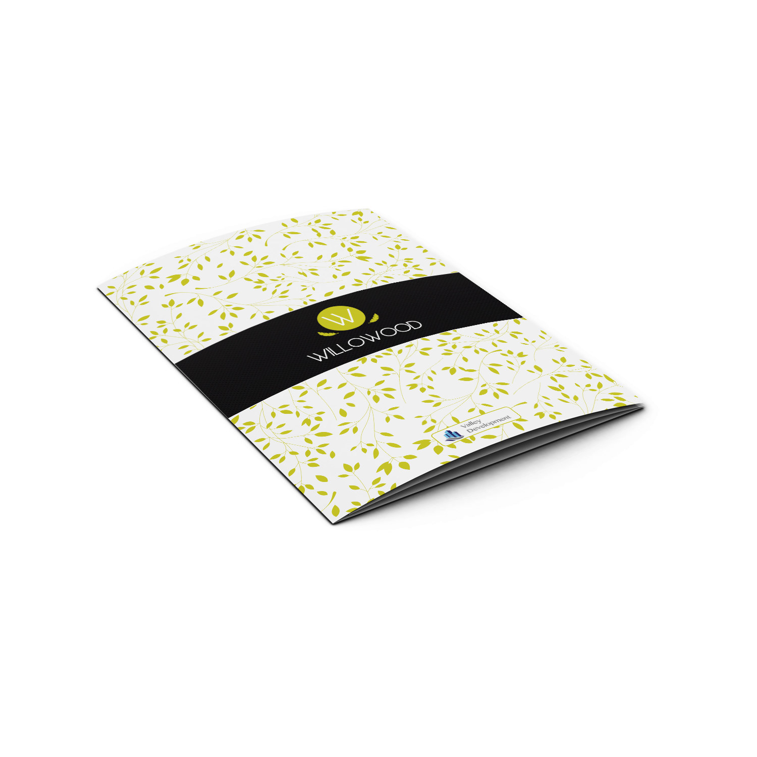 2 versions for a brochure template for Willowood, a new housing development for Valley Developments. Green and Black were the required colors.